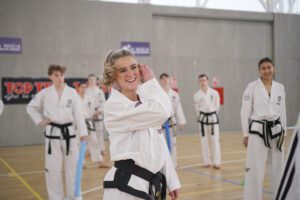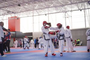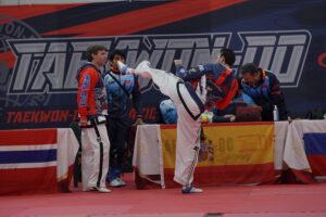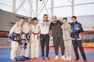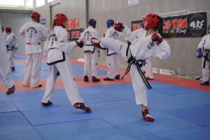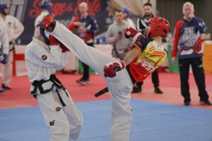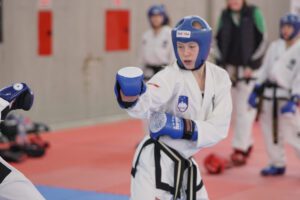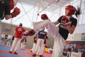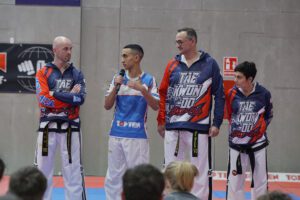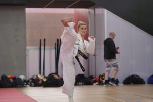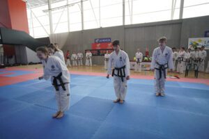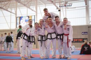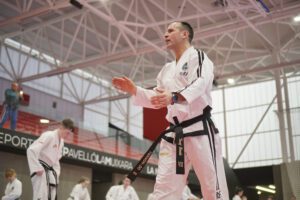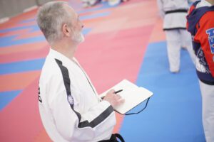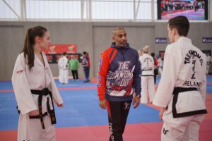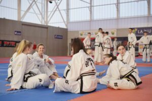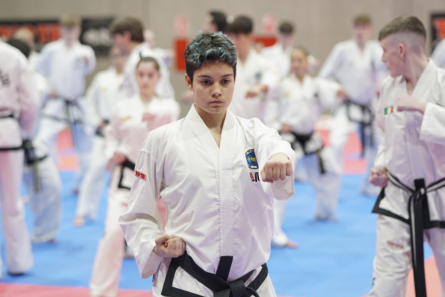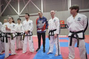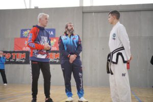 Day three was competition day but with a difference, the focus was to allow the athletes to get as many opportunities to compete against other athletes and other countries as possible and the athletes relished the chance to get mat time against other high level performers without the pressure of a European or World Championships and where they could try some of the exercises from the previous days to challenge themselves in a mix of individual & team events in both patterns and sparring. The competition day was again coordinated by Grandmaster Bos who kept things ticking along smoothly and the coaching team were able to give feedback to the athletes following each performance in sparring and patterns.