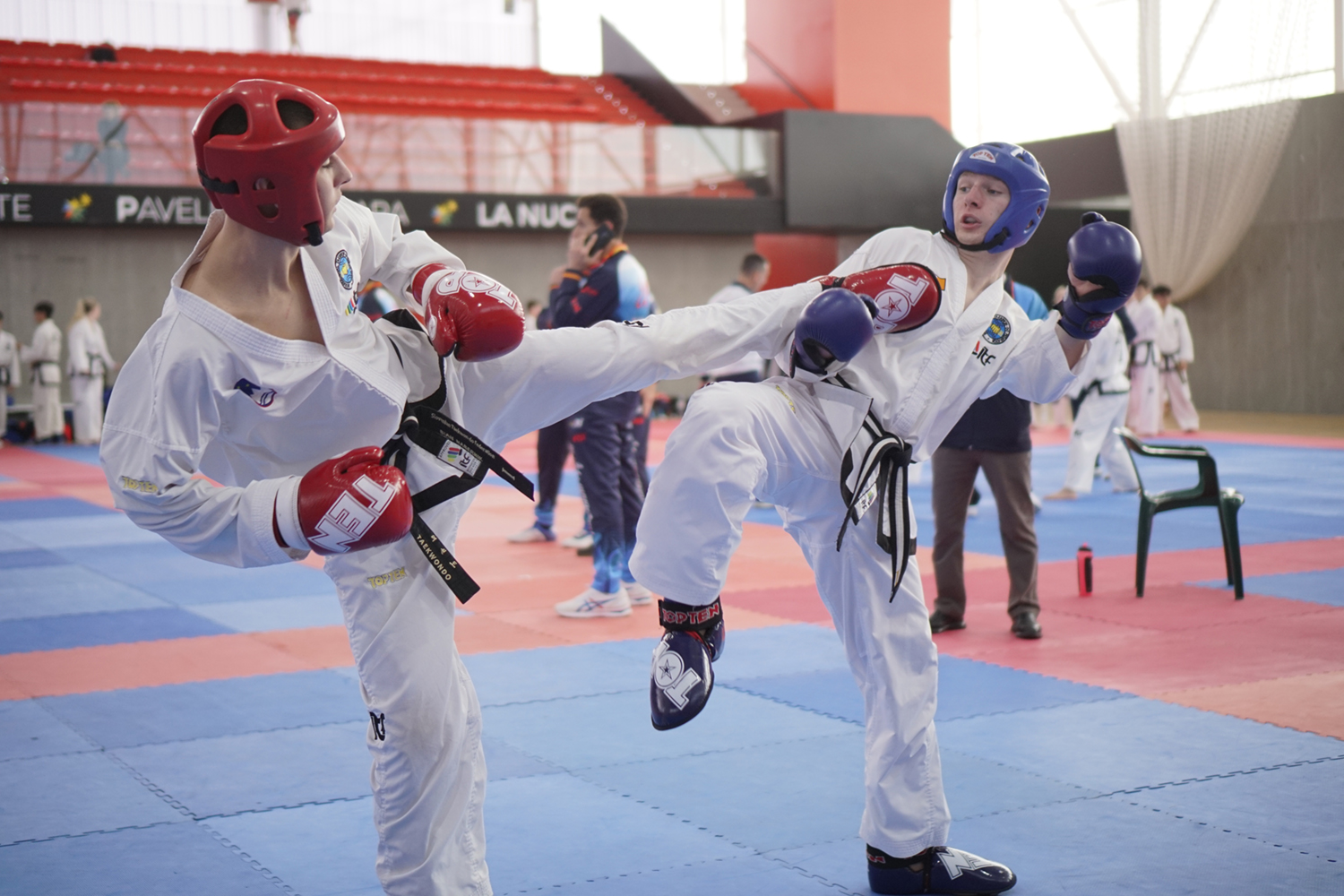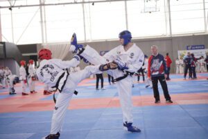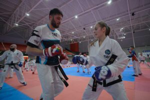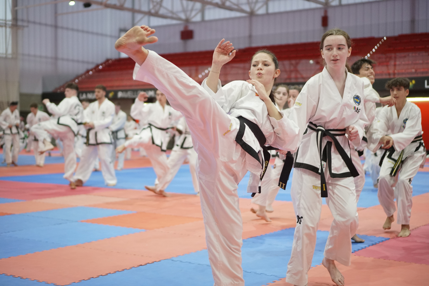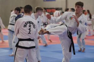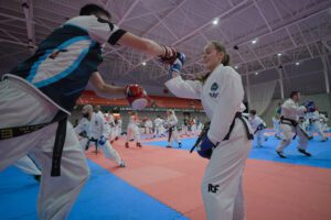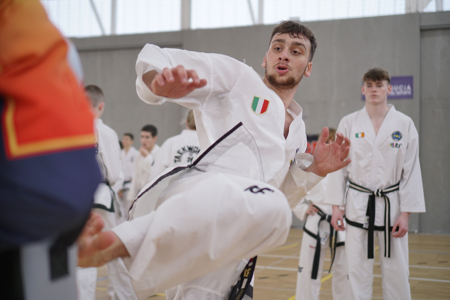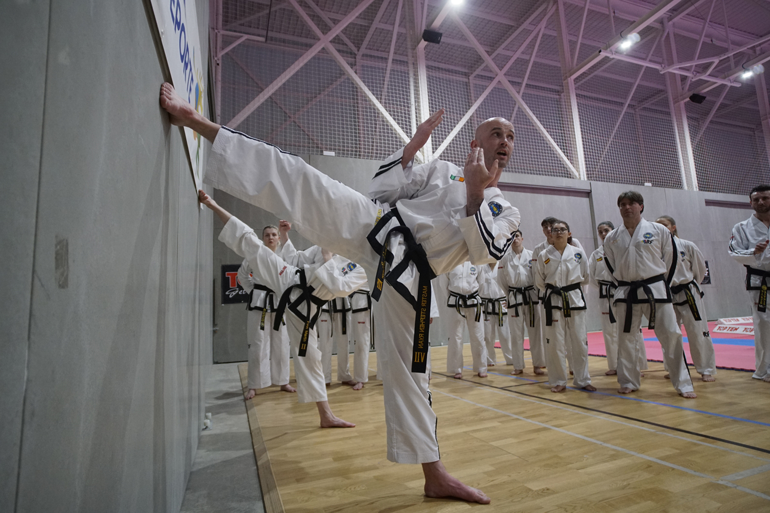 Day two training sessions were again split into two elements running in parallel where the athletes could choose freely which activity to train in. The patterns training was led by Sabum Silvia Farigu & Master Christian Oriolani from Italy and Master Jose Luis Diego from Spain where a lot of useful exercises were shared for developing kicking ability, core strength & explosiveness as well as many technical tips and methods to improve technical content and the overall performance.