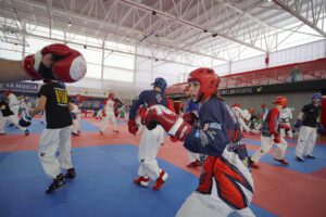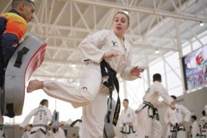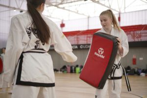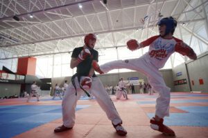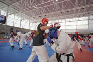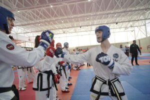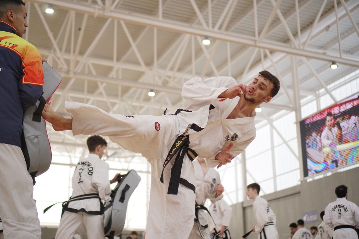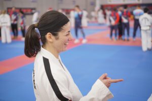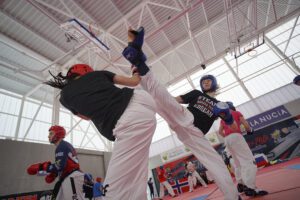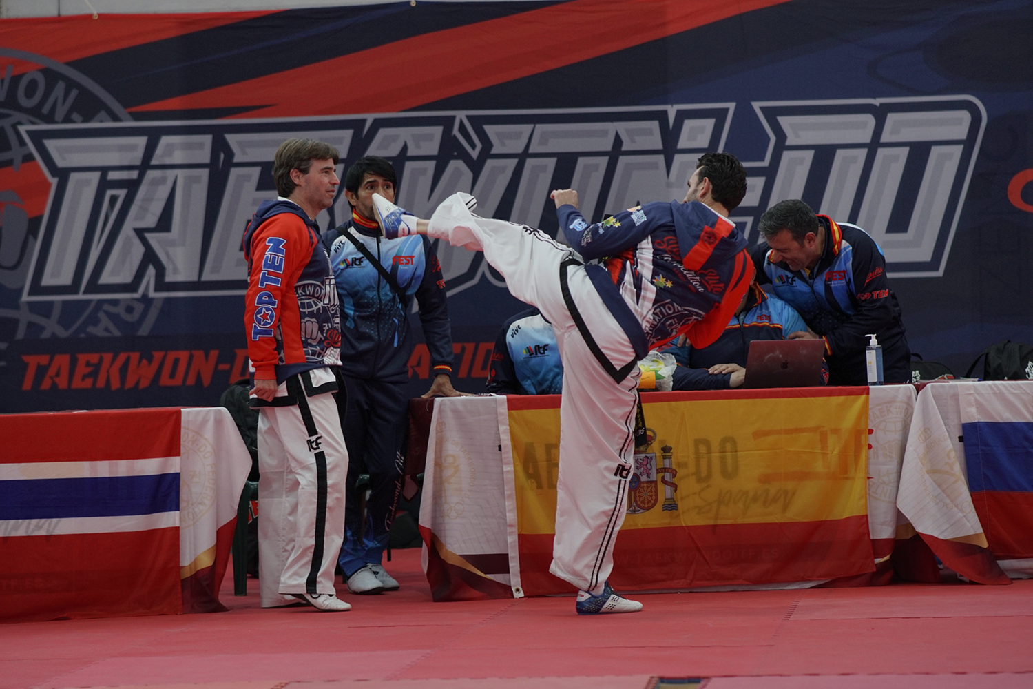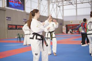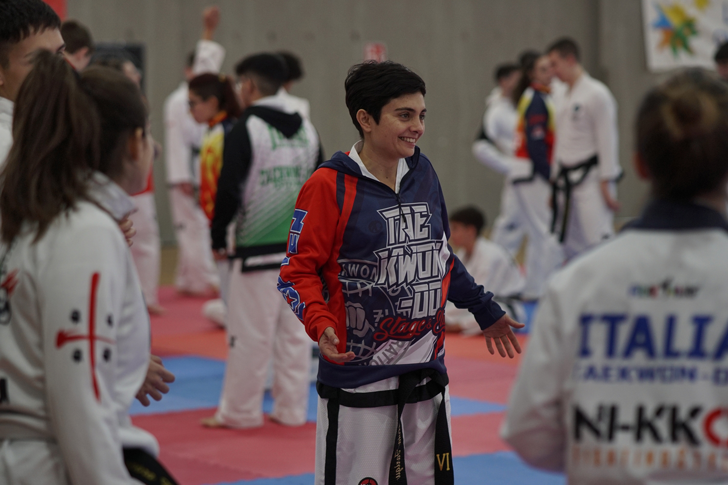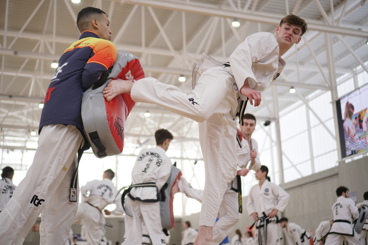 Day two training sessions were again split into two elements running in parallel where the athletes could choose freely which activity to train in. The patterns training was led by Sabum Silvia Farigu & Master Christian Oriolani from Italy and Master Jose Luis Diego from Spain where a lot of useful exercises were shared for developing kicking ability, core strength & explosiveness as well as many technical tips and methods to improve technical content and the overall performance.