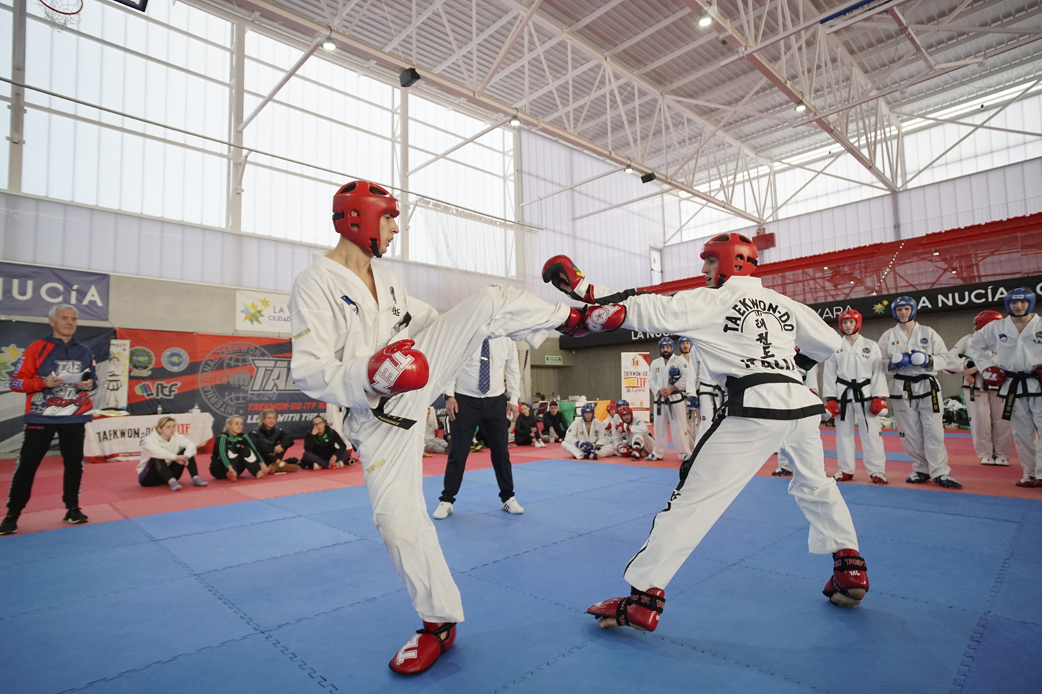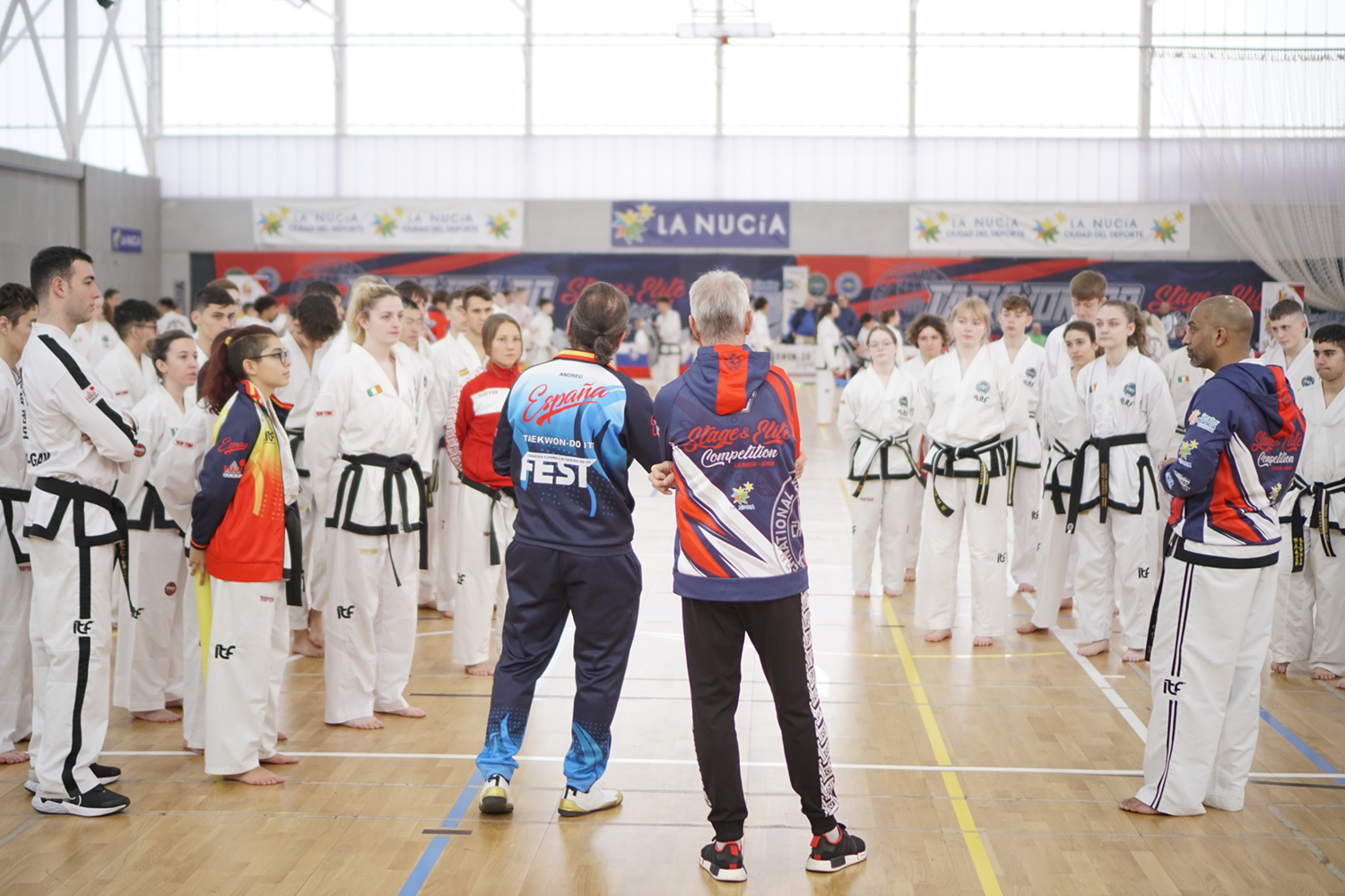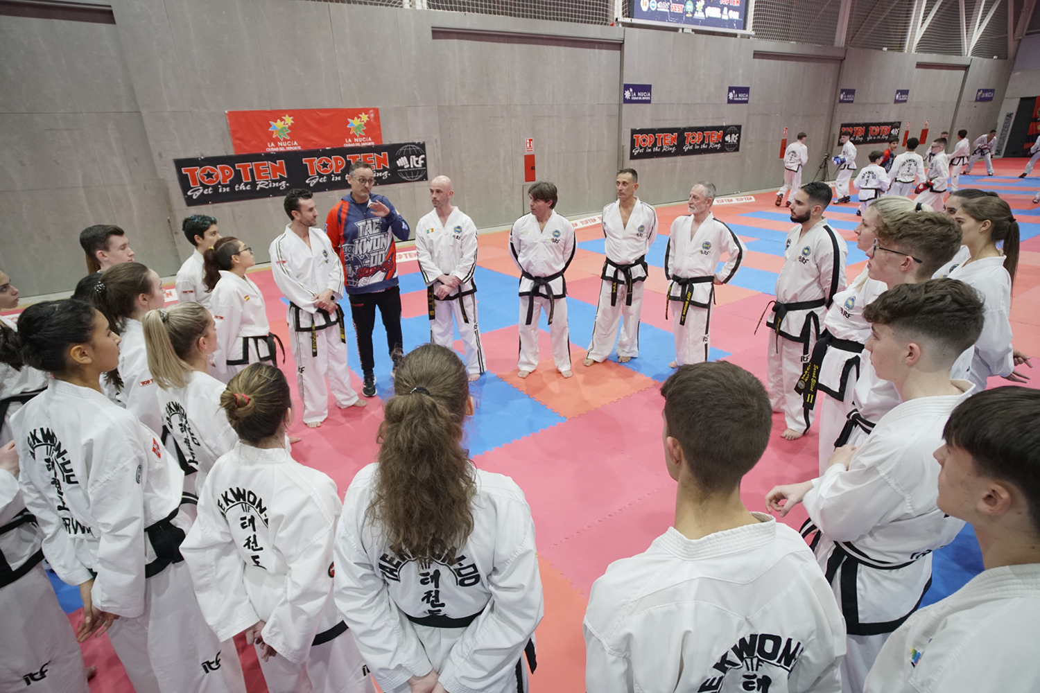 From January 12th to 15th a unique and new event took place in the beautiful La Nucia, Spain, the ITF Elite Stage & Competition. This event was the concept of Grandmaster Bos and Sabum Paco Ferrando and came to fruition following discussions at the ITF World Cup in Koper and the wish to provide more opportunities for development for ITF athletes and to put the athlete at the centre of our focus as they are the future of our martial art and sport. The event was held with the support of the AETF led by President, Master Leonardo Oros Duek and saw national team athletes, coaches and umpires from 8 countries (Spain, Italy, Ireland, Slovenia, England, Norway, Netherlands and Israel) come together for four days of sharing ideas, training, learning from each other and enjoying our wonderful martial art in a very friendly and warm atmosphere.