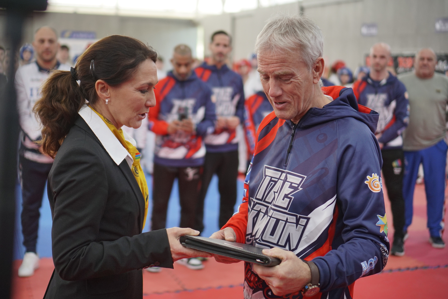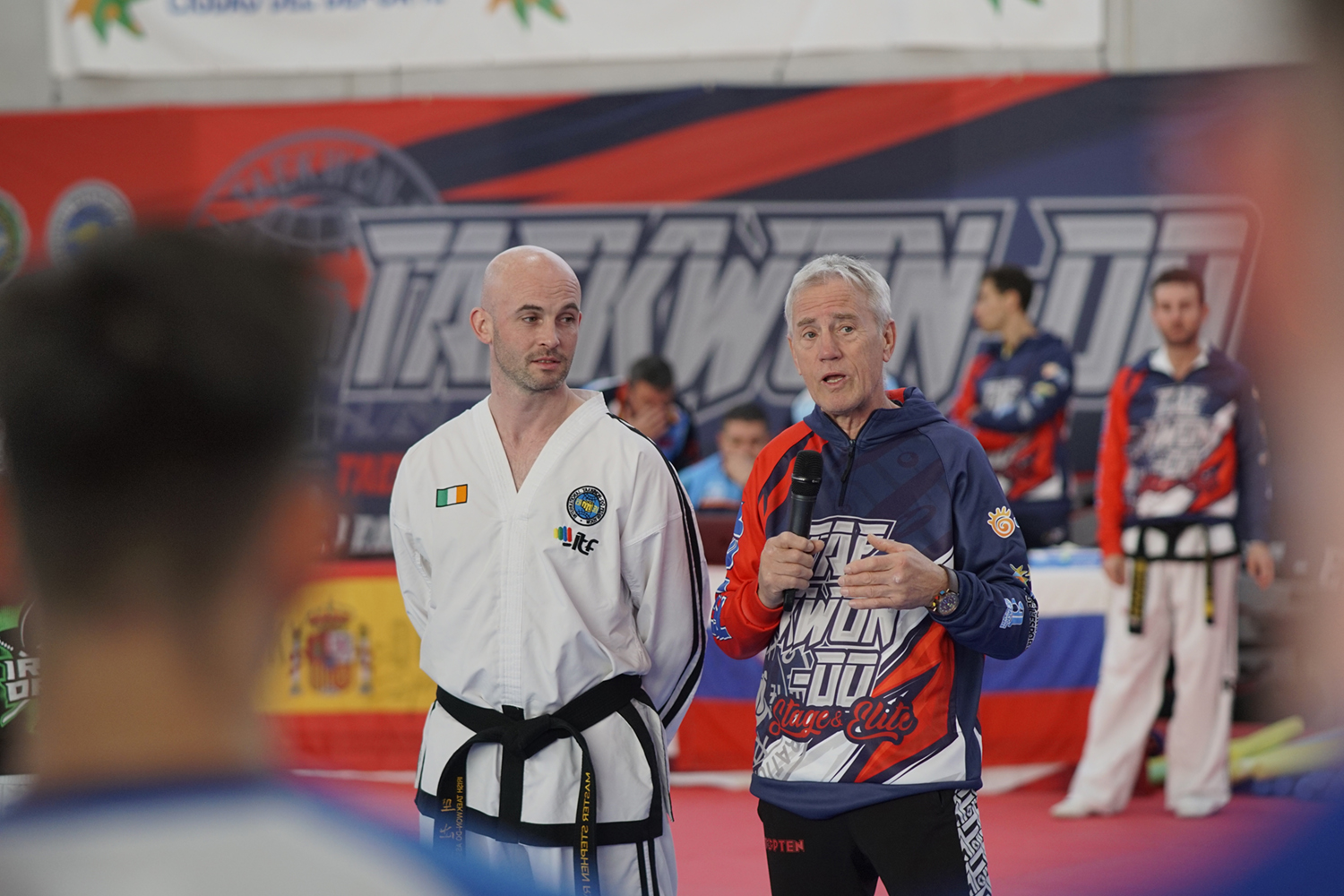 On the sparring side multiple sessions took place, with modules being led by Master Stephen Ryan from Ireland, Master Tomaz Barada from Slovenia, Master Stephen Cooley from Ireland, Master Johann De Silva from England and Grandmaster Willy van de Mortel from the Netherlands. The sessions focused on a wide range of topics to improve sparring performance, from tactical development, building momentum and scores, ring craft, controlling space, countering effectively, the use of constrained sparring scenarios, exercises for conditioning and effective sparring drills. At the end of each session athletes were able to ask questions and get further advice.